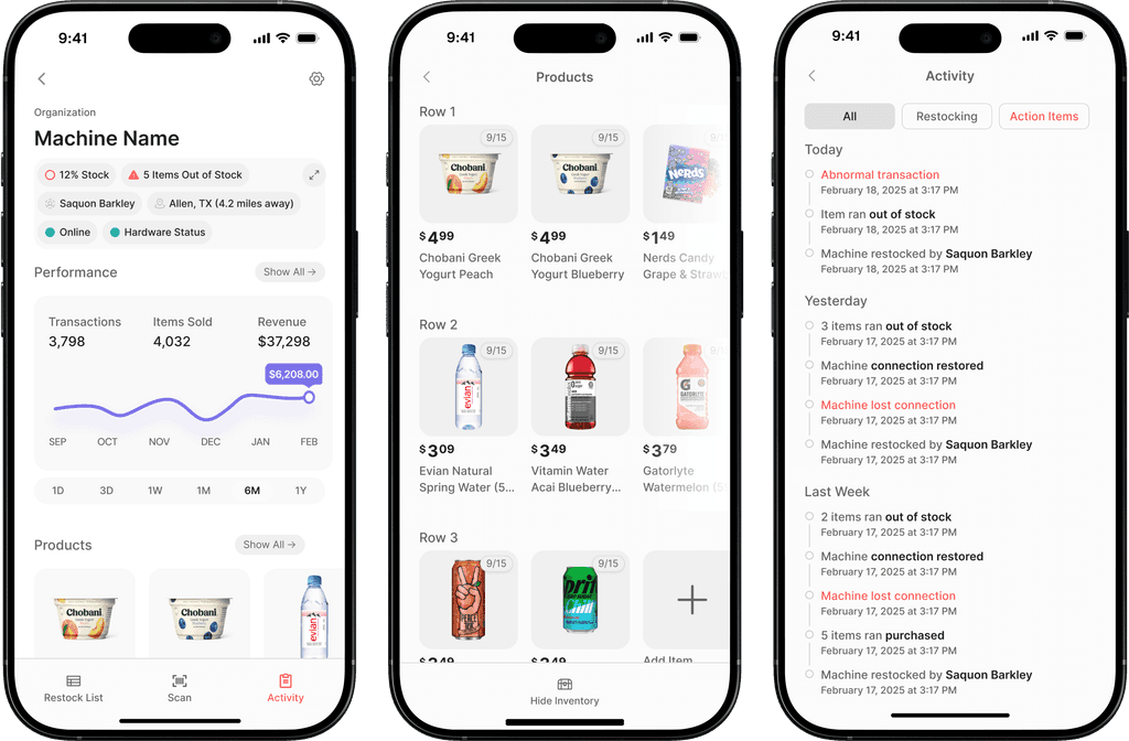 Get real-time alerts from all your machines about sales, restocking, maintenance, activity, etc.